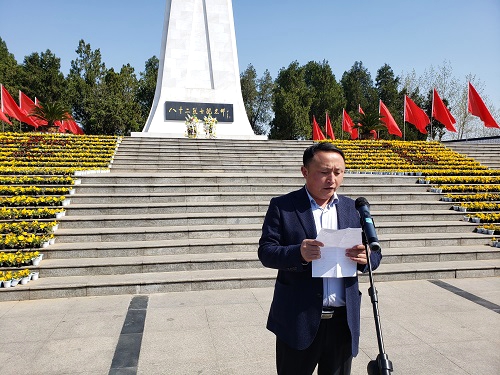 公司黨委書記徐向峰代表公司向英勇的革命烈士們敬獻了花籃,同時發(fā)表了講話。他說這八十二位烈士是為淮陰人民而戰(zhàn),是為祖國而戰(zhàn),他們是無數(shù)抗日先烈的一部分,我們要深切緬懷所有的為國犧牲的革命先烈!現(xiàn)如今,在以習近平同志為核心的黨中央的帶領(lǐng)下,在習近平新時代中國特色社會主義思想引領(lǐng)下,中國特色社會主義進入了新時代,作為新時代的共產(chǎn)黨員,我們要繼續(xù)傳承先烈遺志,宏揚他們不畏艱難、不怕犧牲、英勇頑強的革命精神,服從大局、心中無我的擔當精神。徐書記號召大家要加強自我修煉,全面提高自我,事事有擔當、能擔當、會擔當,盡顯先鋒模范的帶頭作用,帶領(lǐng)一代一代水建人,為淮陰水建更加美好的明天而努力奮斗。