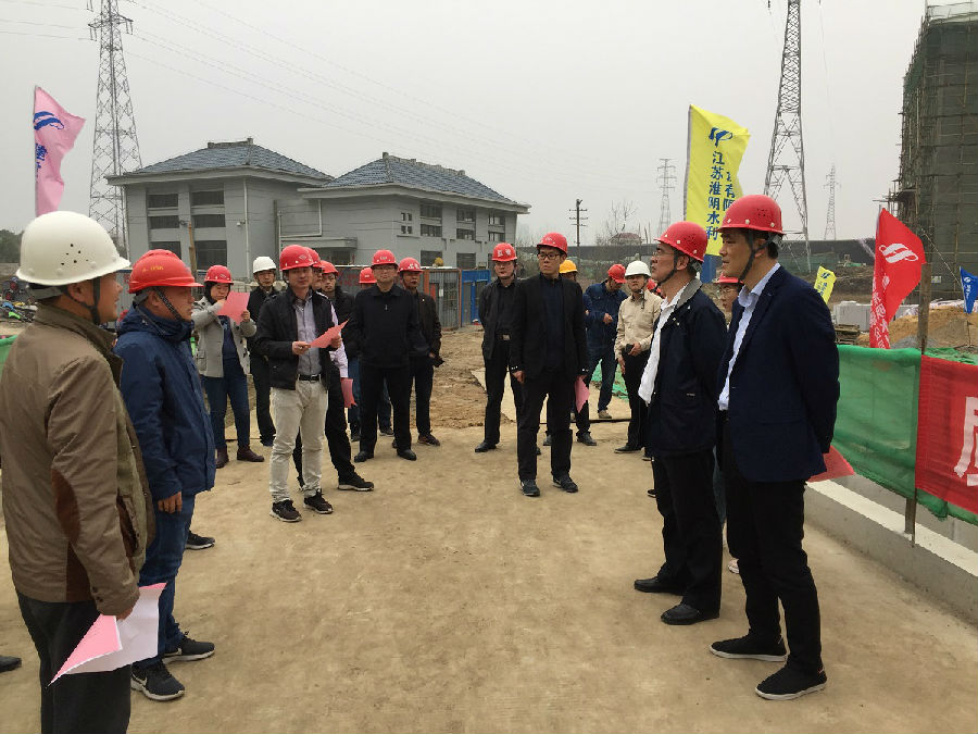 2019年3月21日,水利部建安中心總工程師熊平、建設司基建處副處長陳何鎧一行在安徽省水利廳工程建設處處長周建春、蕪湖市水務局局長王津華、水務局副局長王峰、蕪湖市鏡湖區(qū)農(nóng)水局孫科長等人陪同下,視察我公司承建的袁澤橋泵站建筑安裝工程。